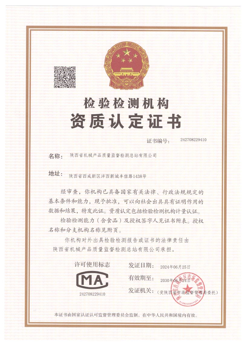 陜西省機械產(chǎn)品質量監(jiān)督檢測總站有限公司