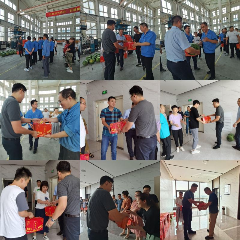 8月18日下午,公司工會開展夏季送清涼慰問活動,公司黨委委員、副總經(jīng)理、工會主席石魯豫帶領(lǐng)公司各分會主席深入一線,為冒著高溫堅(jiān)守工作崗位的職工送去清涼飲品、綠豆、西瓜等防暑降溫物品,把清涼送到一線工作區(qū)域,把關(guān)懷送到職工們的心坎里。