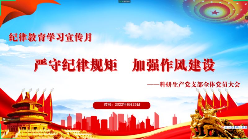 根據(jù)《中共陜西省機(jī)械研究院有限公司委員會“關(guān)于開展‘紀(jì)律教育學(xué)習(xí)宣傳月’活動的方案”》相關(guān)要求,2022年8月25日上午10點,科研生產(chǎn)黨支部開展以“嚴(yán)守紀(jì)律規(guī)矩,加強(qiáng)作風(fēng)建設(shè)”為主題的線上全體黨員大會,會議由支部書記段偉飛主持。