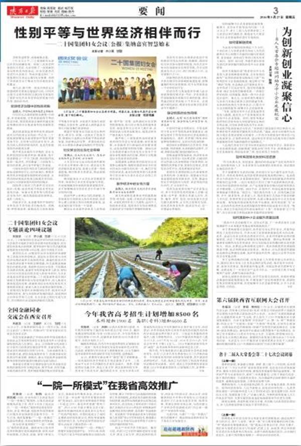 陜西日?qǐng)?bào)2016年5月27日第三版刊登了《“一院一所模式”在我省高效推廣》的專題報(bào)道,我院作為推廣“一院一所模式”的先行者在取得階段性成果的同時(shí)能夠有幸被省級(jí)主流媒體進(jìn)行報(bào)道,我們倍感欣慰但更應(yīng)再接再厲,在“十三五”期間不斷推動(dòng)我院實(shí)現(xiàn)轉(zhuǎn)型升級(jí),培育新的經(jīng)濟(jì)增長點(diǎn),為我院的經(jīng)濟(jì)建設(shè)夯實(shí)基礎(chǔ)。