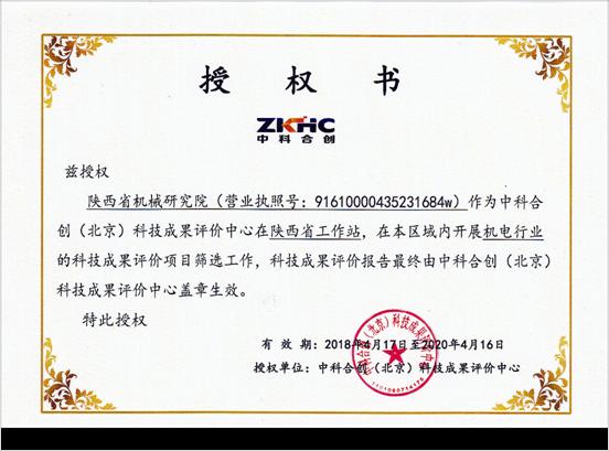 4月17日,中科合創(chuàng)(北京)科技成果評(píng)價(jià)中心正式授權(quán)陜西省機(jī)械研究院作為陜西省工作站,在全省范圍內(nèi)開展機(jī)電行業(yè)的科技成果評(píng)價(jià)服務(wù)工作。