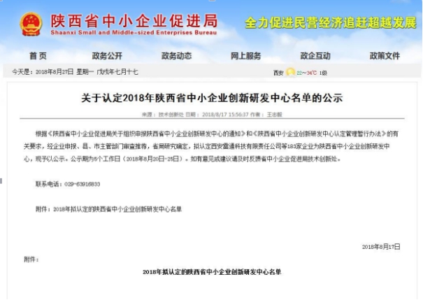 2018年8月,陜西省中小企業(yè)促進(jìn)局發(fā)布《關(guān)于認(rèn)定2018年陜西省中小企業(yè)創(chuàng)新研發(fā)中心名單的公示》的公告,我院“陜西華夏粉末冶金有限責(zé)任公司”在公示名單之列,被省中小企業(yè)局認(rèn)定為“陜西省中小企業(yè)創(chuàng)新研發(fā)中心”。
