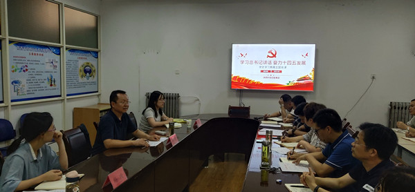 首先周總以“學習總書記講話 奮力十四五發(fā)展”為題,在科研生產(chǎn)黨支部講授專題黨課。機械院黨委中心組全體成員、各支部支委參加學習。