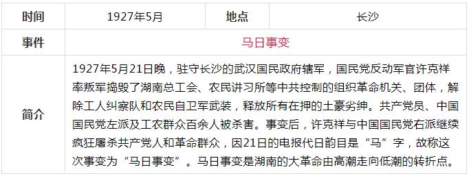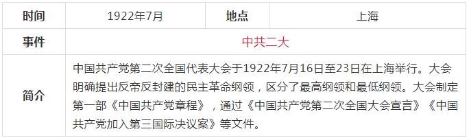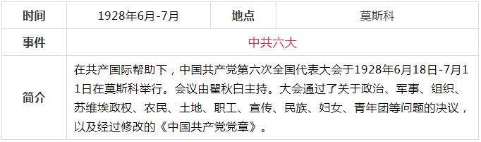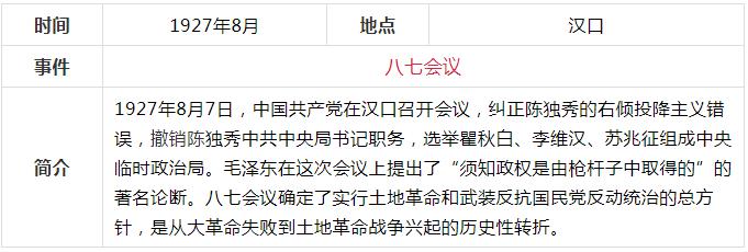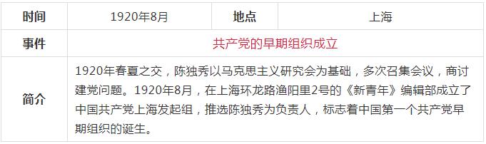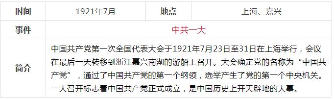 當(dāng)前,黨史學(xué)習(xí)教育活動正在進(jìn)行,《關(guān)于在全黨開展黨史學(xué)習(xí)教育的通知》要求,對黨史學(xué)習(xí)教育作出了部署安排。要做到學(xué)史明理、學(xué)史增信、學(xué)史崇德、學(xué)史力行,為全面建設(shè)社會主義現(xiàn)代化國家、實現(xiàn)中華民族偉大復(fù)興中國夢而不懈奮斗。確保黨史學(xué)習(xí)教育取得扎實成效。中共一百年歷史內(nèi)容非常豐富,浩如煙海,通過表格的形式,更容易理清歷史的脈絡(luò),把握重大事件,我們先從新民主主義革命時期開始學(xué)習(xí),下面這張表格通過時間、地點、事件、簡介四個部分作歸納,一目了然。
