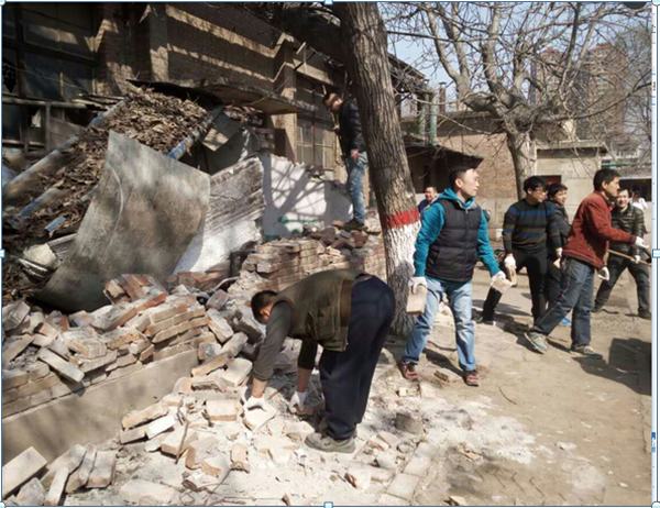 陽春三月,春暖花開,3月11日下午院團委配合我院物業(yè)管理部,發(fā)揚團員青年職工不怕苦不怕累的精神,組織開展了一場熱情高漲的“拆除破舊 美化環(huán)境”義務勞動。